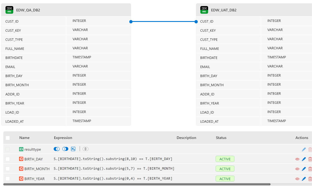 Refer to figure 5 below, which shows an iceDQ reconciliation rule connecting the staging area (DB2) as the source and the Party (DB2).