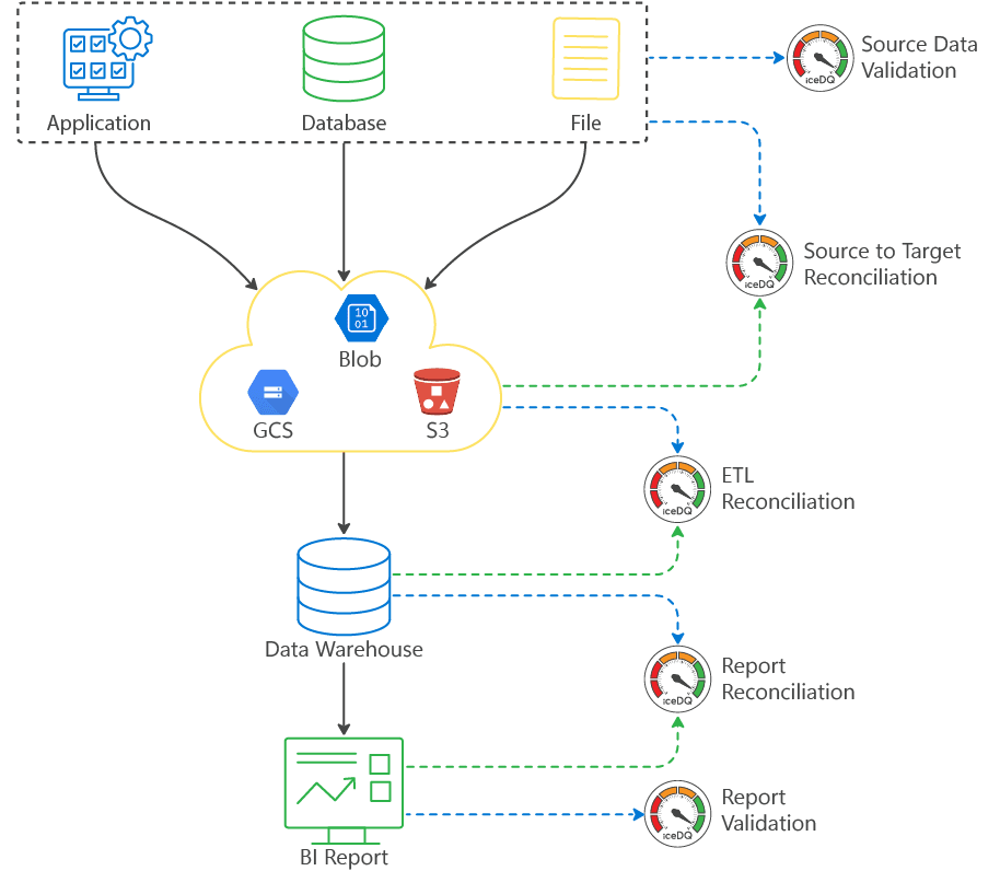 Stop using tools that only sample records or cover one use case. iceDQ validates every record across your entire pipeline – from ETL testing to production monitoring – without sampling. Get complete visibility and control across all environments.